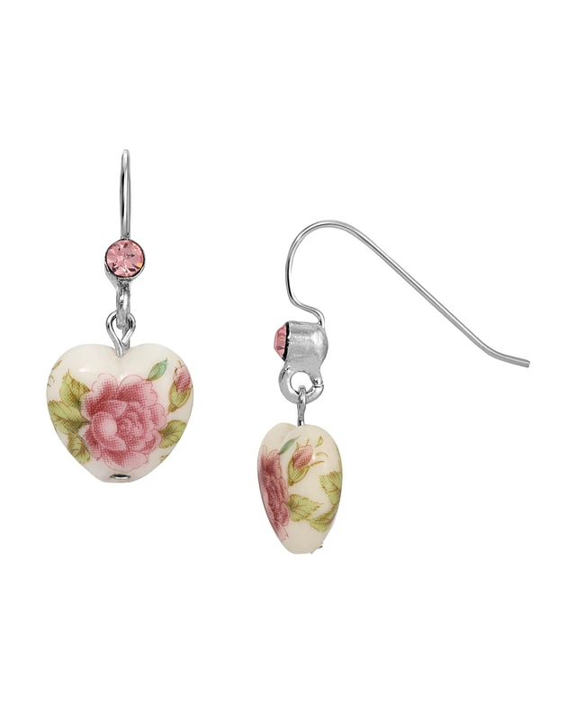 2028 Silver-Tone Crystal Oval Flower Drop Earrings