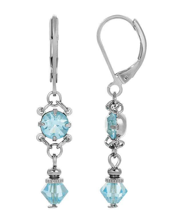 2028 Silver-Tone Aqua Fireball and Filigree Drop Earrings