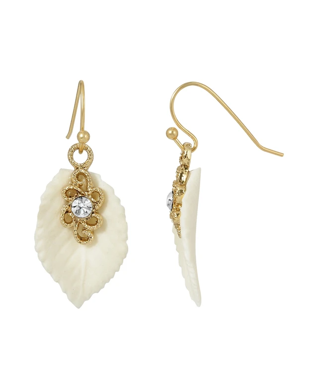 2028 Crystal Ivory Leaf Drop Earring