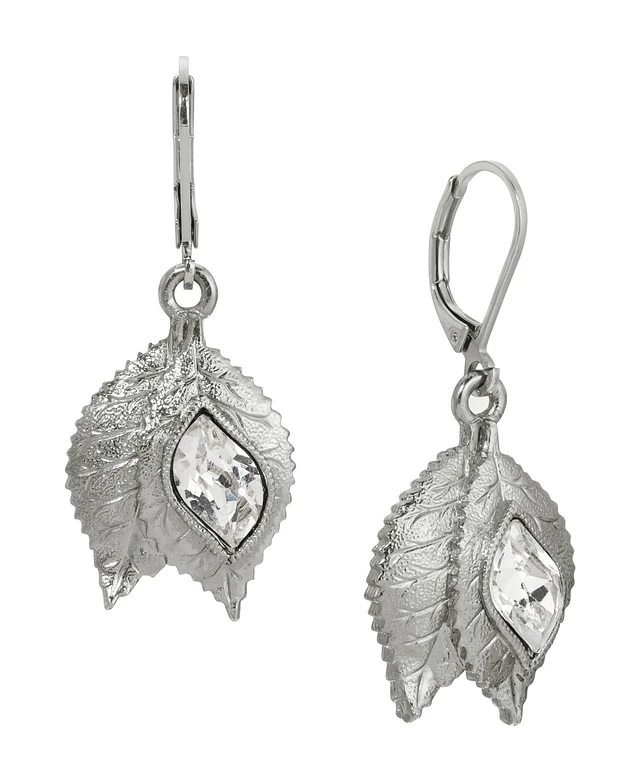 2028 Silver-Tone Crystal Oval Flower Drop Earrings