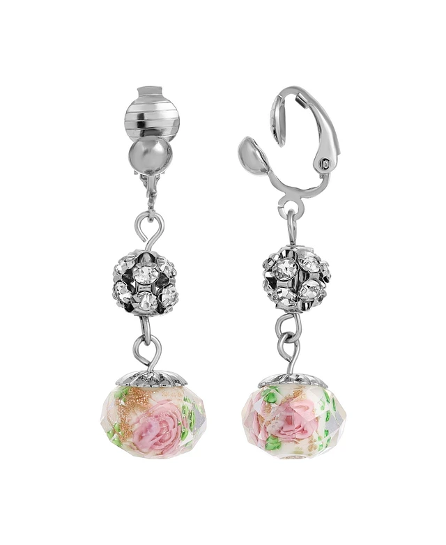 2028 Crystal Pink Flower Beaded Clip Earrings