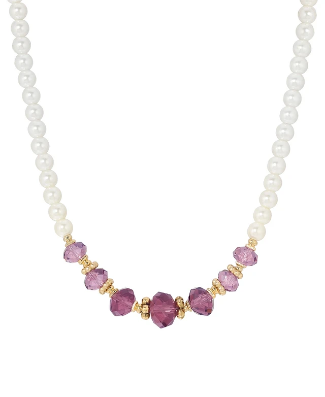 2028 Faux Cultivated Pearl Purple Glass Bead Necklace