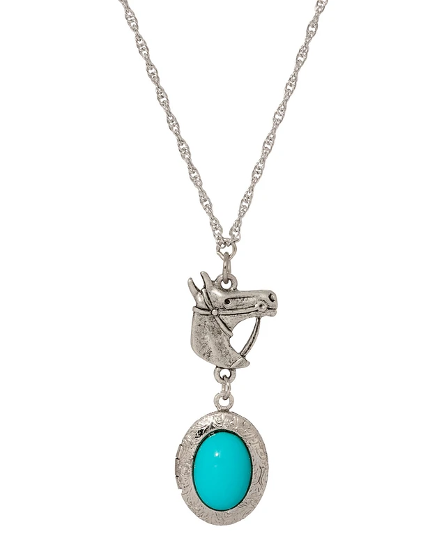2028 Faux Turquoise Oval Horse Locket Necklace