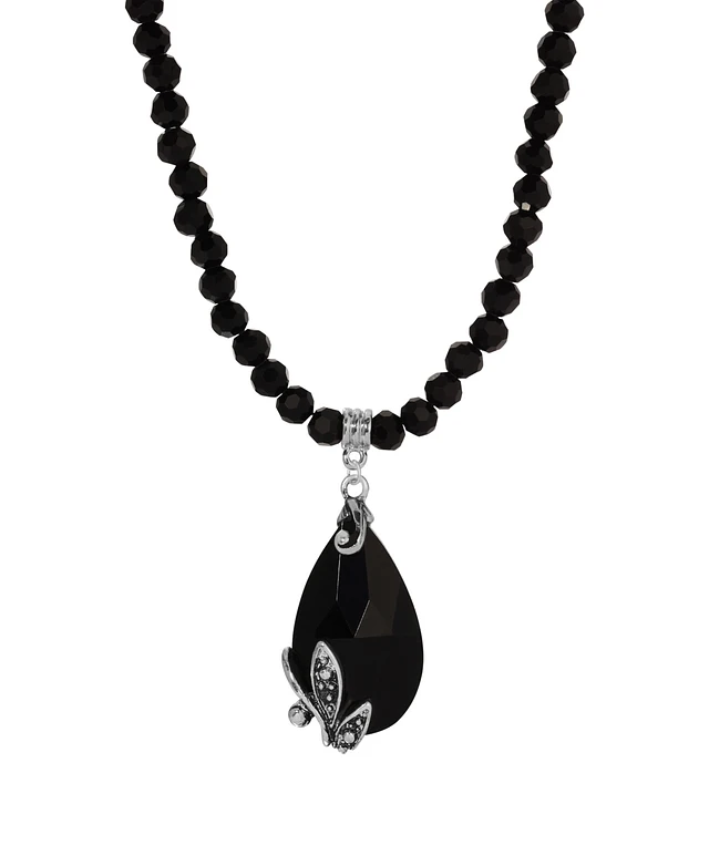 2028 Glass Black Beaded Teardrop Necklace