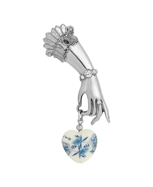 2028 Glass Blue Heart Charm Ladies Hand Pin