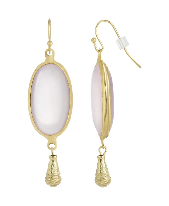 2028 Gold-Tone and Pink Oval Drop Earrings