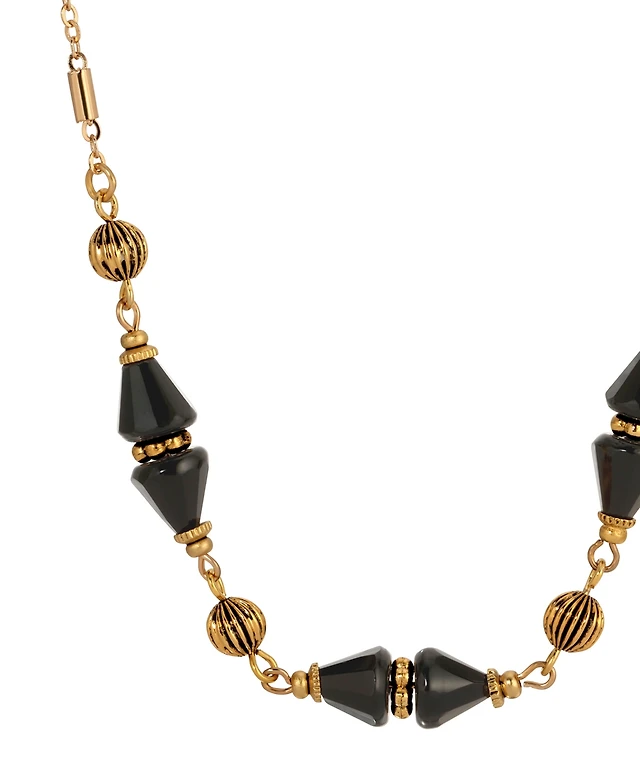 2028 Gold-Tone Imitation Pearl and Black Floral Beaded 15" Adjustable Necklace