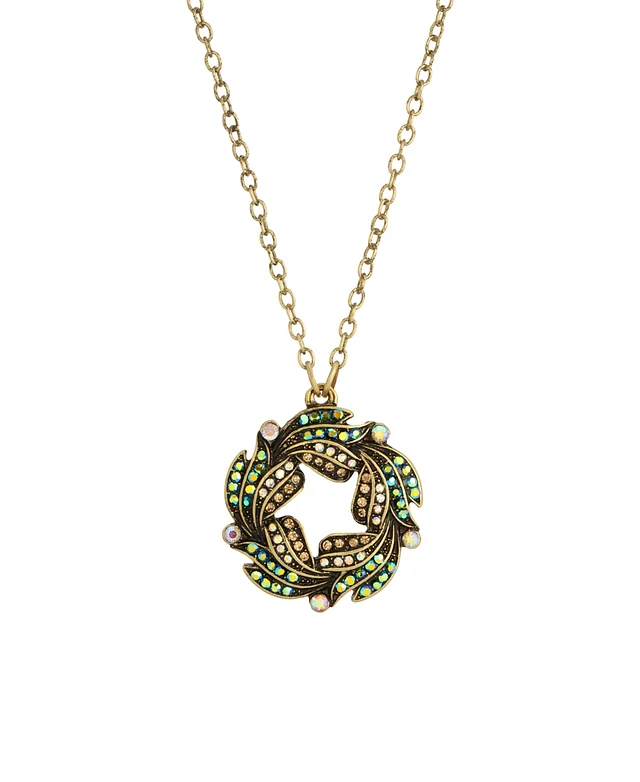 2028 Gold-Tone Blue Iridescent Aurora Borealis Glass Stone Wreath Necklace