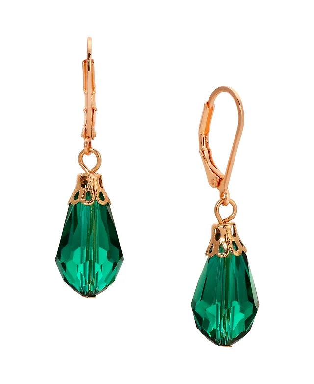 2028 Gold-Tone Crystal Faceted Drop Earrings