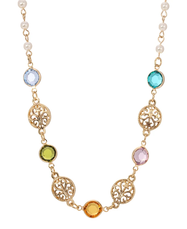 2028 Gold-Tone Oval Semi Precious with Crystals Necklace