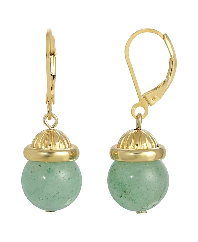 2028 Gold-Tone Semi Precious Round Stone in Hoop Earrings