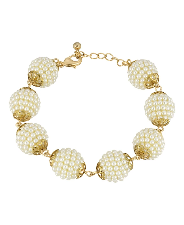 2028 Gold-Tone Multi Round Imitation Pearl Ball Bracelet