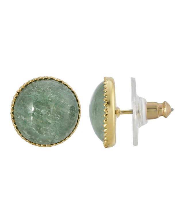 2028 Gold-Tone Round Semi Precious Aventurine Button Earrings