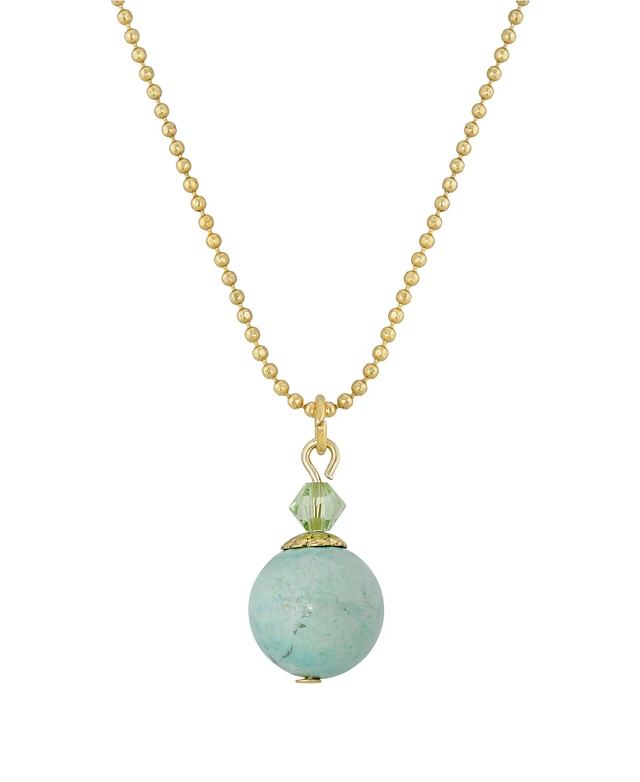 2028 Gold-Tone Semi Precious Turquoise Round Beaded Drop 18" Necklace