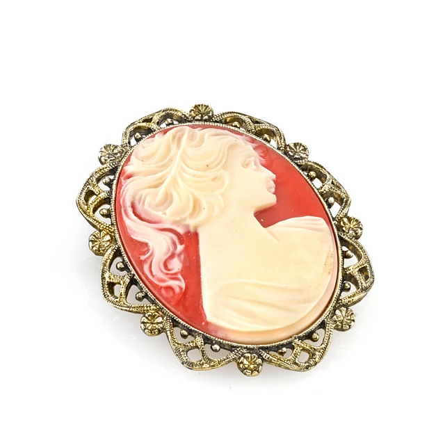2028 Gold-Tone Simulated Orange Cameo Oval Brooch