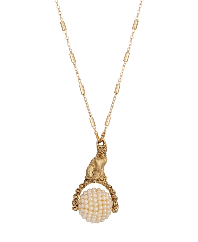 2028 Imitation Pearl Cat Spinner Pendant Necklace
