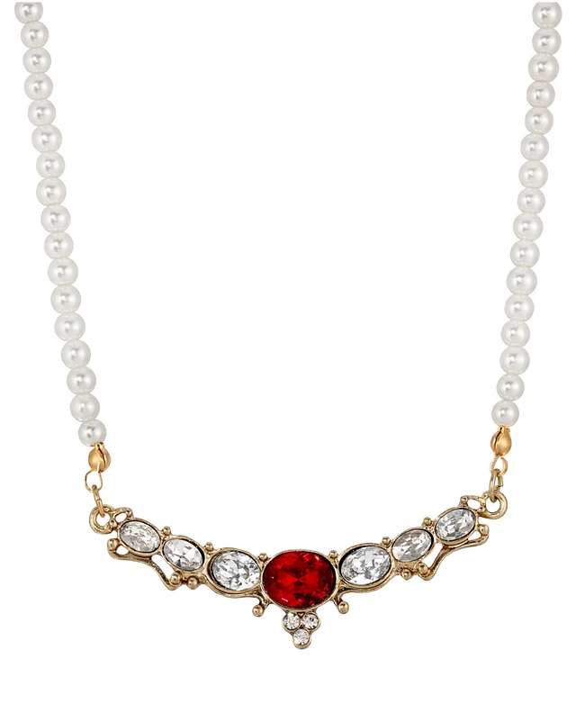 2028 Imitation Pearl Red Glass Crystal Collar Necklace