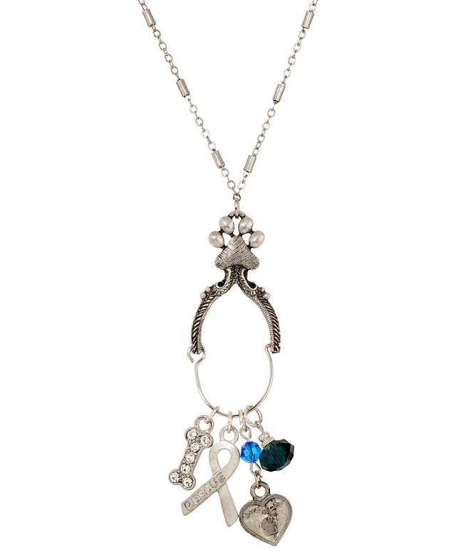 2028 Pewter Crystal Bone and Paw Bar Necklace