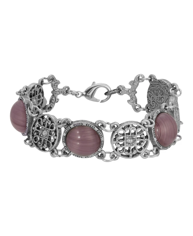 2028 Pewter Round Cornalian Cameo and Cultura Imitated Pearl Bracelet