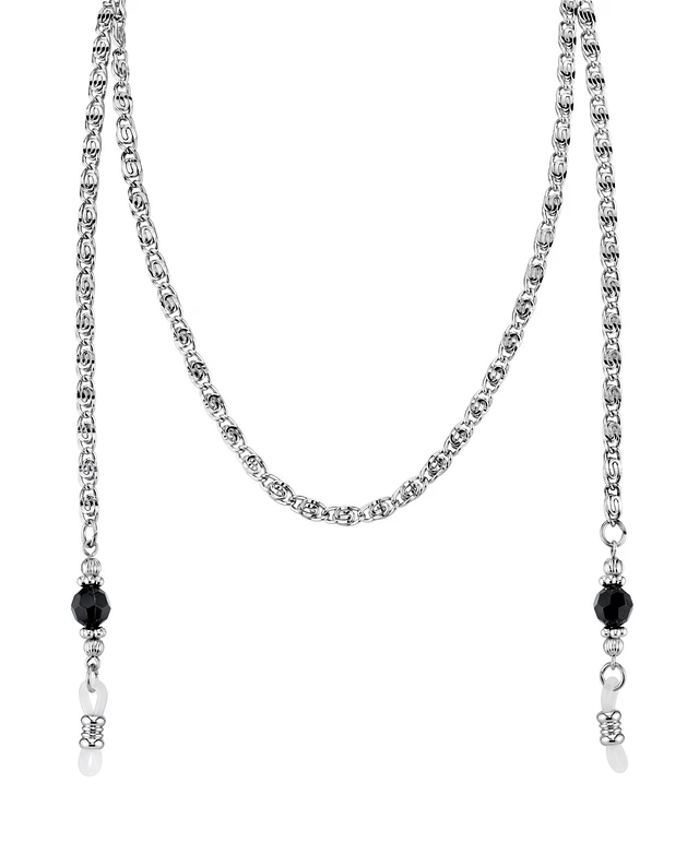 2028 Silver-Tone Chain Black Bead Eyeglass Holder 30"