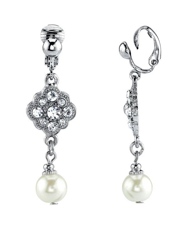 2028 Silver Tone Crystal and Imitation Pearl Drop Clip Earrings