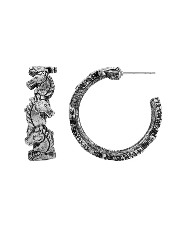 2028 Silver-Tone Horse Head Hoop Earrings