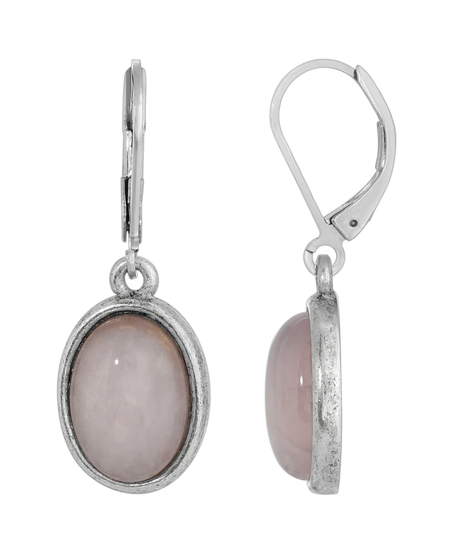 2028 Silver-Tone Semi Precious Rose Quartz Oval Drop Earrings