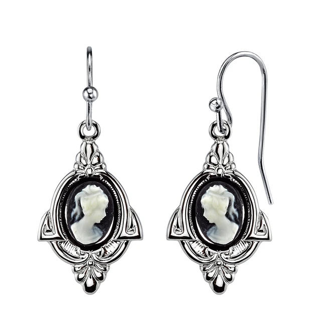 2028 Silver-Tone Simulated Cameo Drop Earrings
