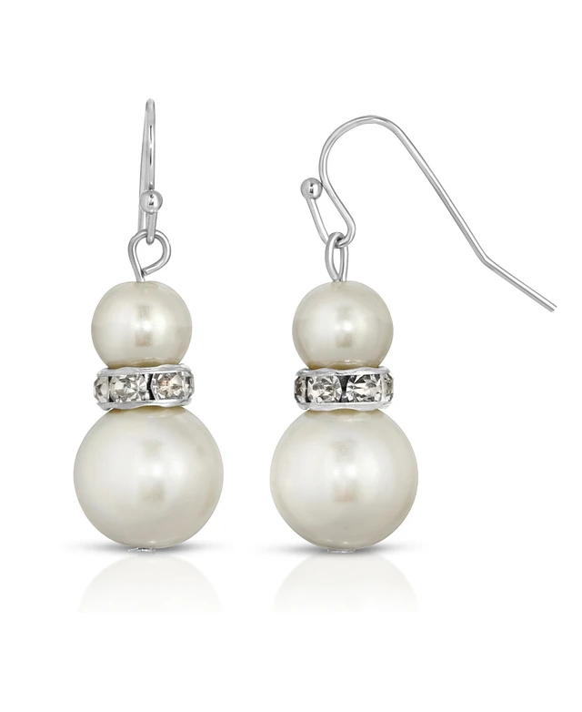 2028 Silver-Tone White Graduated Imitation Pearl and Crystal Drop Earrings