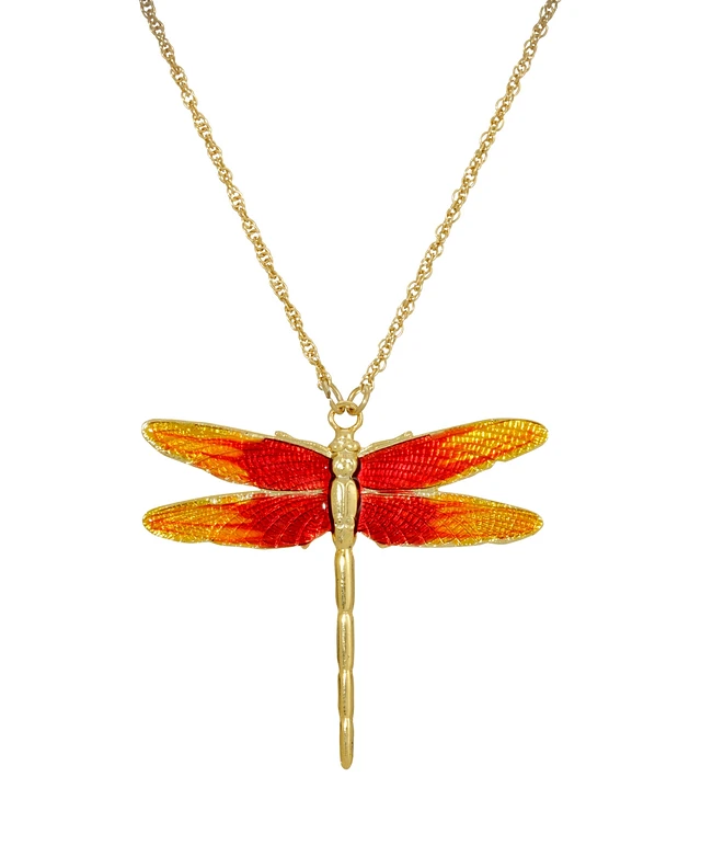 2028 Women's Gold Tone Orange Enamel Dragonfly Pendant Necklace