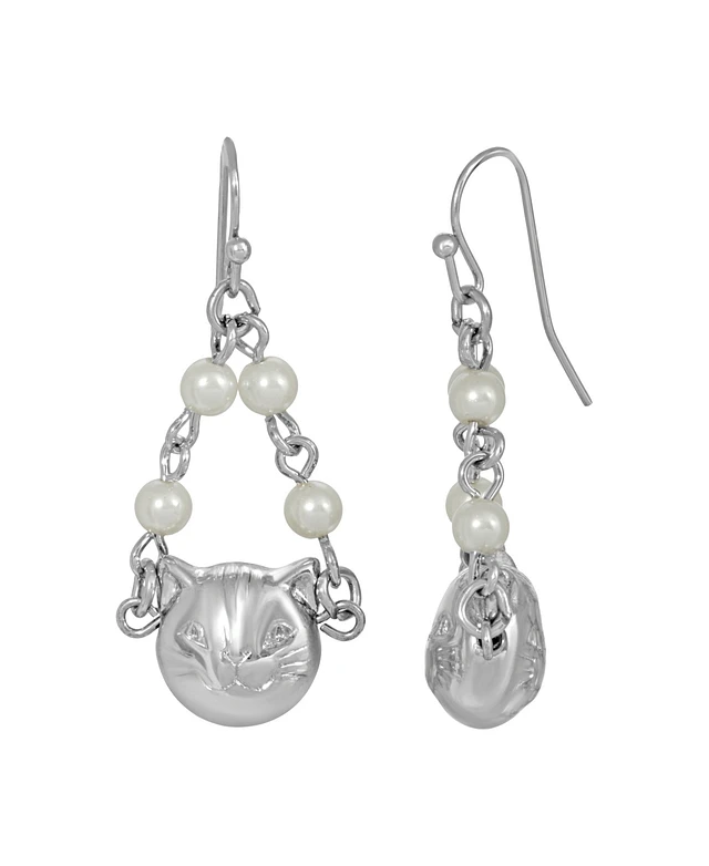 2028 Women's Silver Tone Cat Imitation Pearl Drop Earrings
