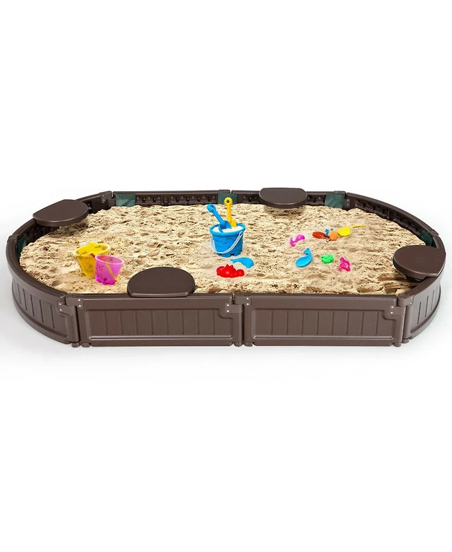 6 Feet Kids Oval Sandbox with Built-in Corner Seat and Bottom Liner