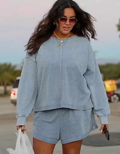 Hollister Feel Good Easy Velvet Valley Graphic Crew Sweatshirt