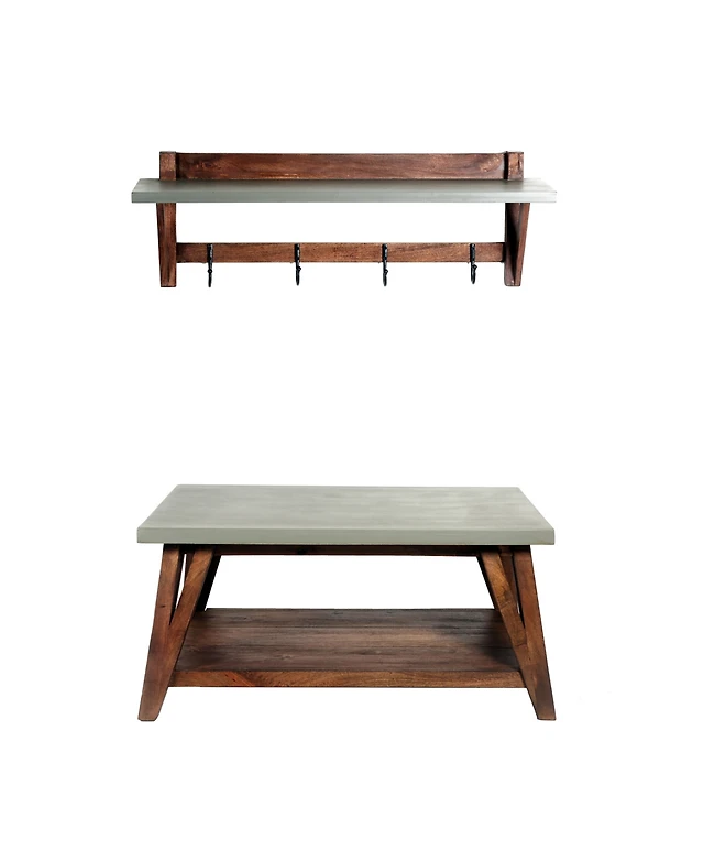Alaterre Furniture Brookside Cement-Top Wood Entryway Coat Hook and Bench