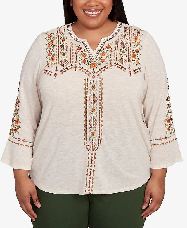 Alfred Dunner Plus Mount Laurel Geometric Floral Embroidery Printed Top