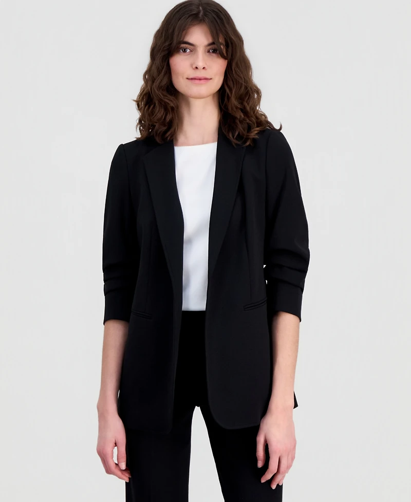 Anne Klein Women's Stretch Crepe Scrunch-Sleeve Open-Front Blazer