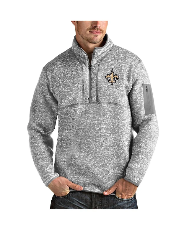 Antigua Men's Heather Gray New Orleans Saints Team Logo Fortune Quarter-Zip Pullover Jacket