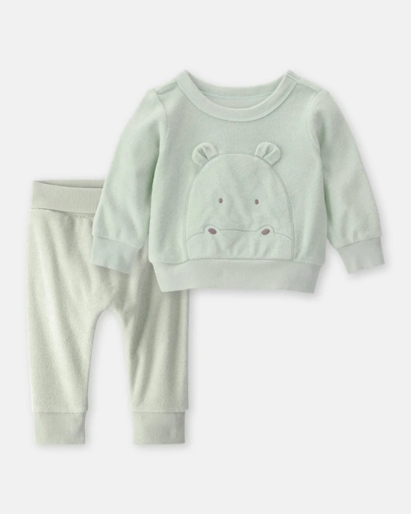 Baby 2-Piece Hippo Terry Pullover Sweatshirt & Pant Set - Green
