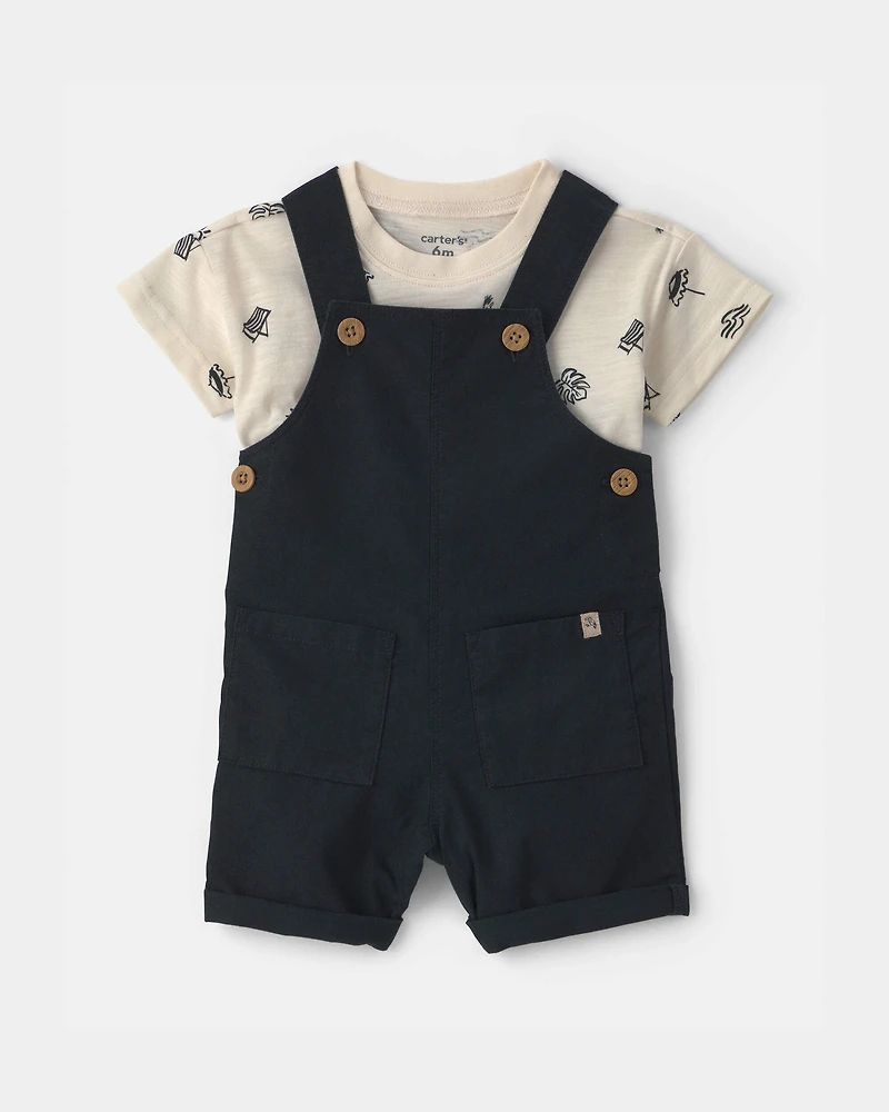 Baby Boy 2-Piece Beach Overall Set - Black/Ivory