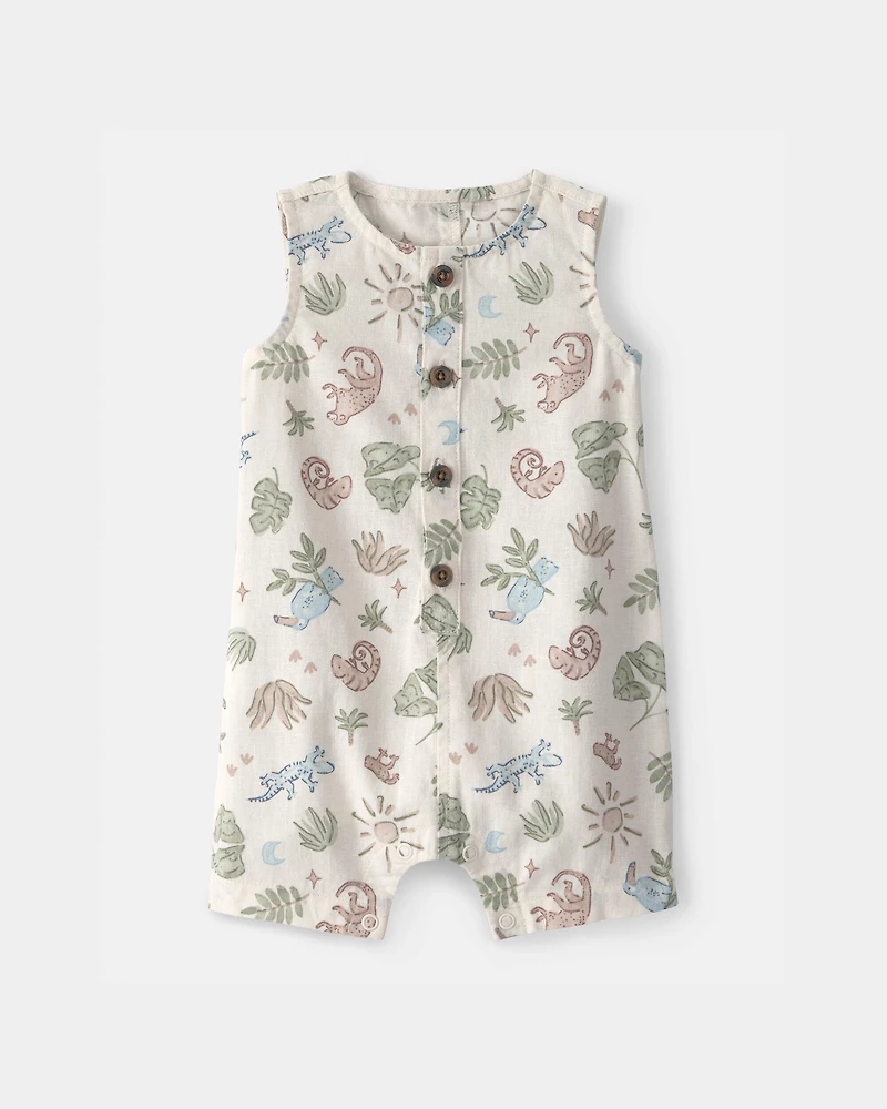 Get ready for sunny adventures with this stylish romper designed for your little explorer. Made from soft faux linen, it keeps your baby comfortable all day long. The charming desert print adds a touch of fun to casual outings, while the button placket makes dressing a breeze. Parents appreciate the fabric, perfect for warm days and easy diaper changes. Plus, the playful design pairs well with favorite sandals or sun hats. With trusted quality and thoughtful details, this romper is a must-have for every baby boy's wardrobe. Let your child enjoy carefree moments in style.