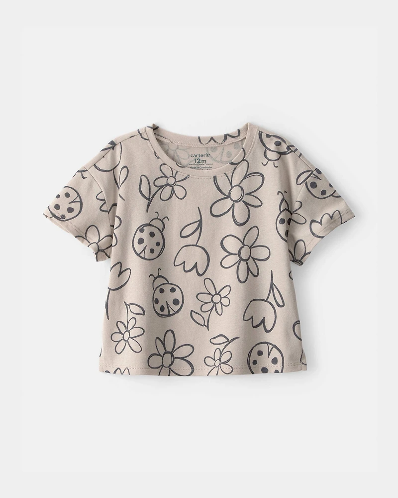Baby Girl Ladybug Floral Relaxed Top - Brown