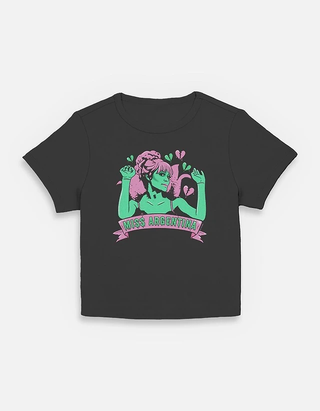 Beetlejuice Miss Argentina Hearts Mineral Wash Womens Crop T-Shirt