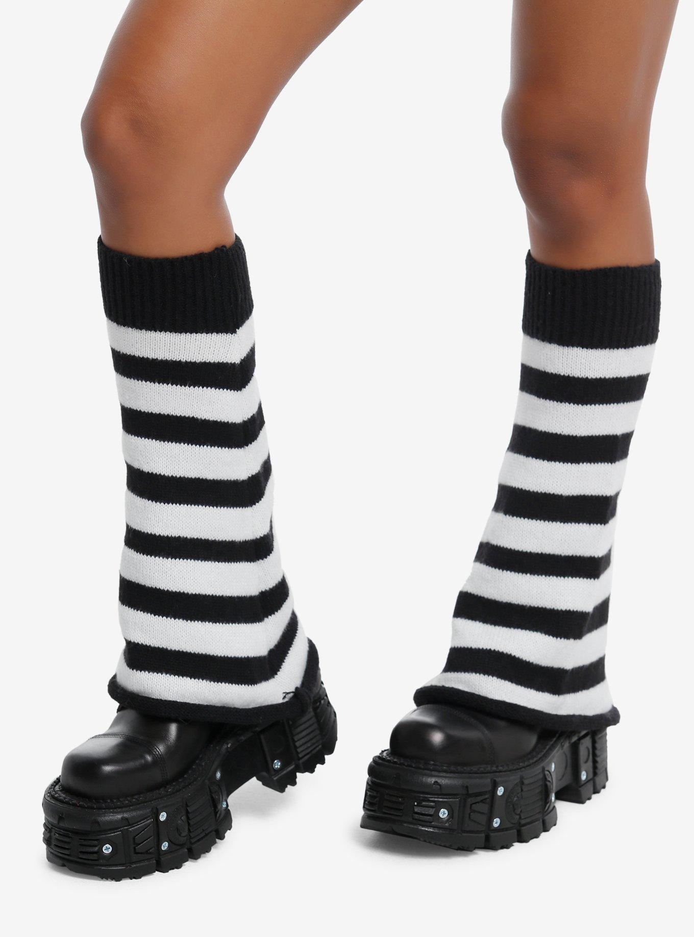 Add these leg warmers to your next 'fit! They're a black-and-white striped knit with a slight flare at the ankles.