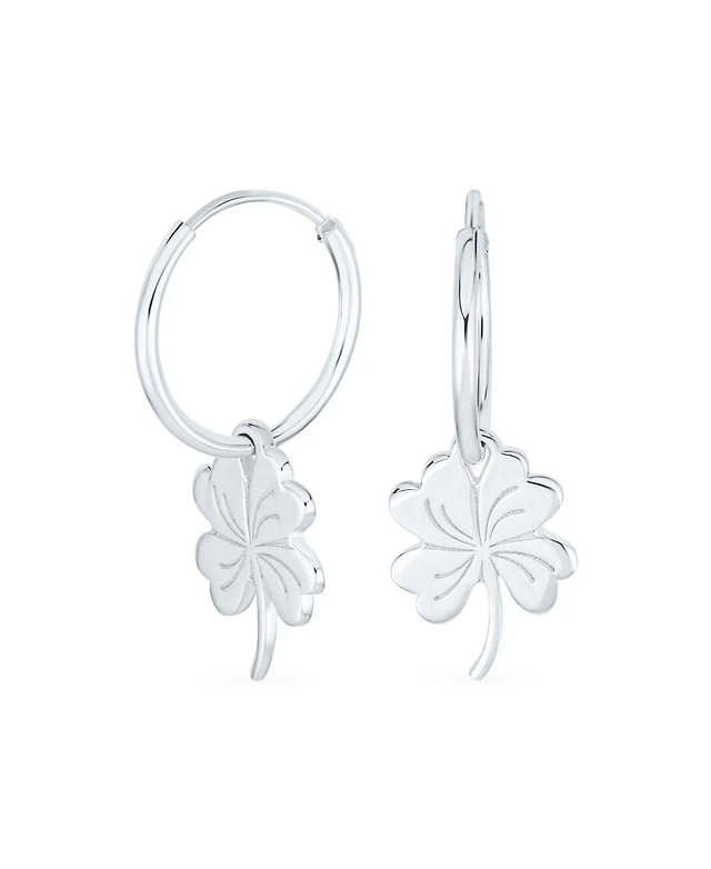 Bling Jewelry Luck of the Irish Shamrock Mini Hoop Huggie Earrings in Sterling Silver