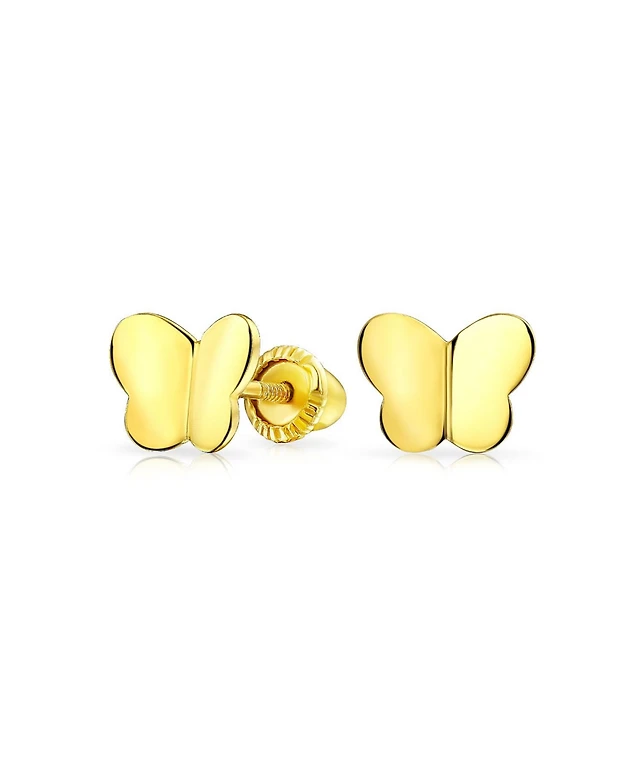Bling Jewelry Petite Minimalist14K Yellow Gold Lucky Butterfly Stud Earring Secure Screw back