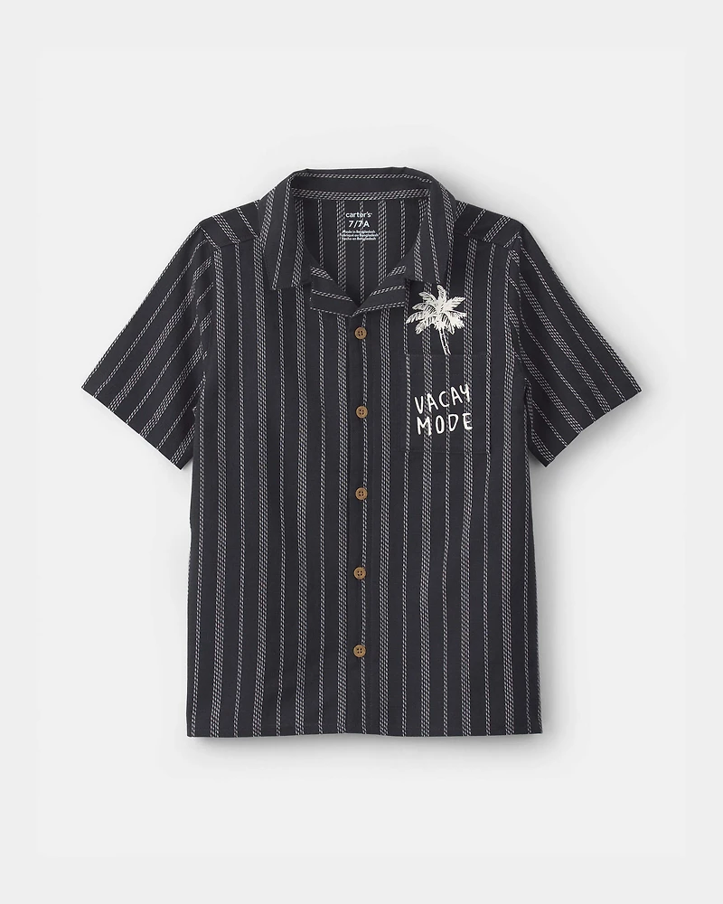 Boys Striped Short-Sleeve Button-Down Shirt - Black