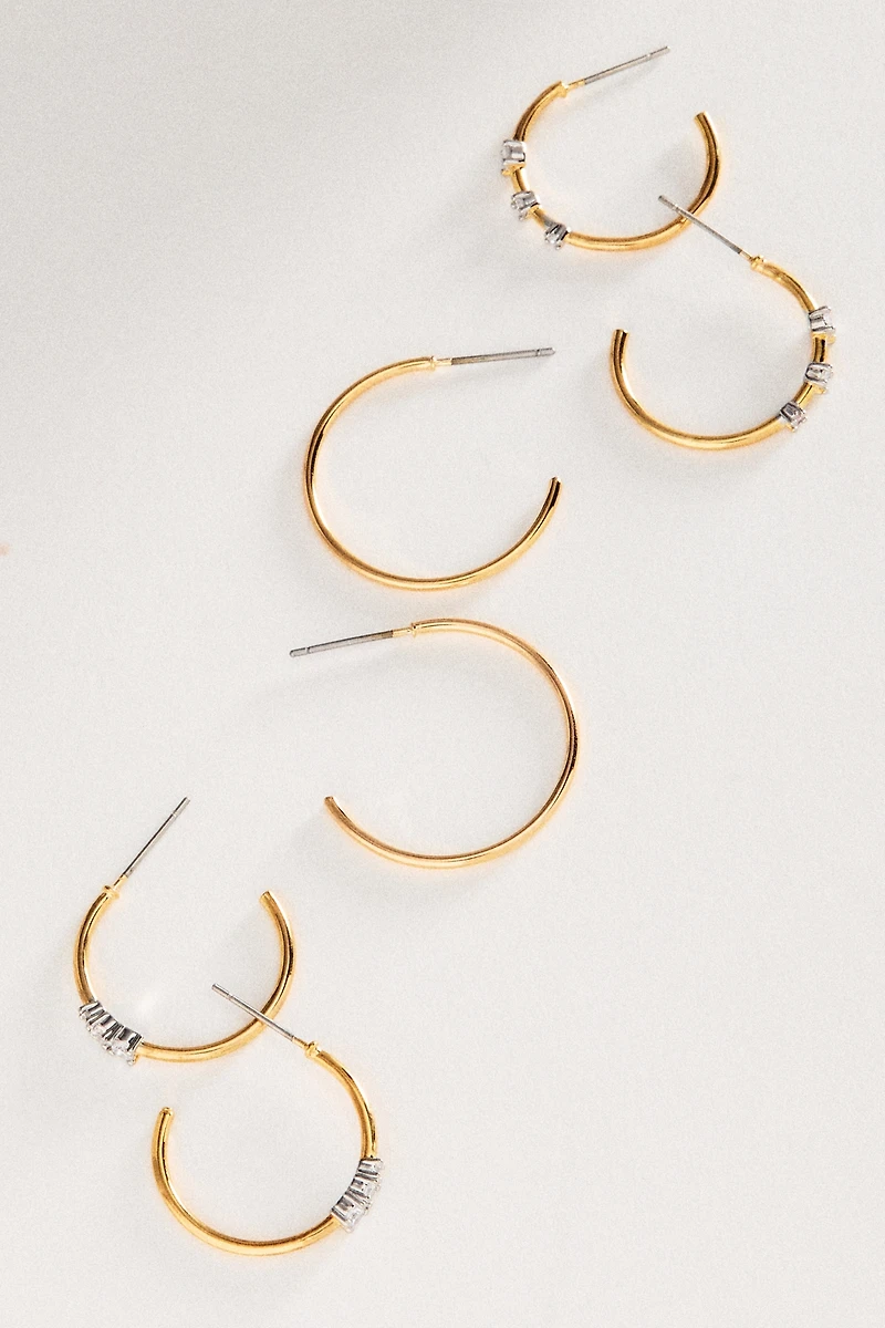 By Anthropologie Mixed Metal Hoop Earrings, Set of 3