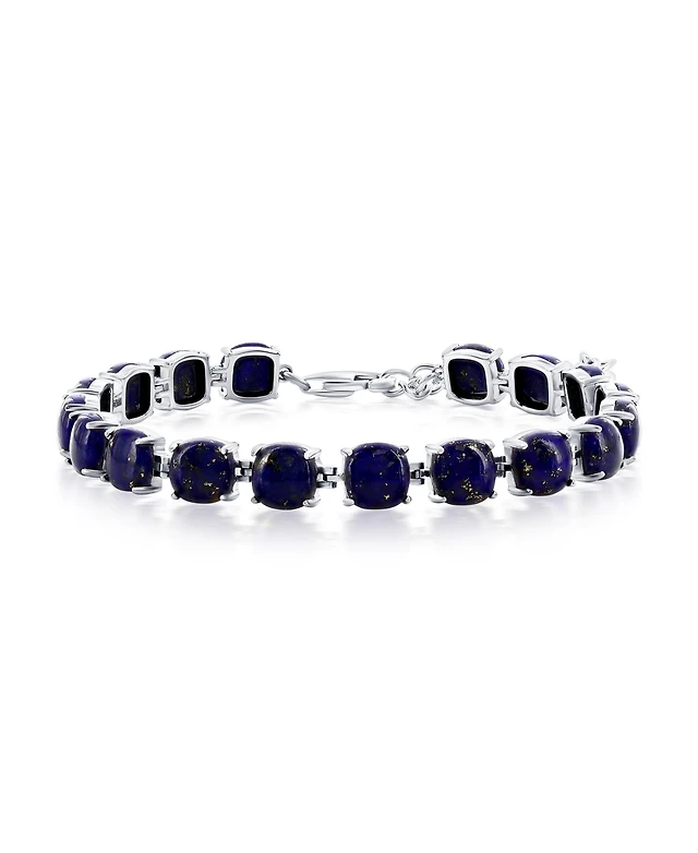 Caribbean Treasures Sterling Silver, 6.5mm 4-Prong Tennis Bracelet (Available Larimar, Lapis, or Malachite)