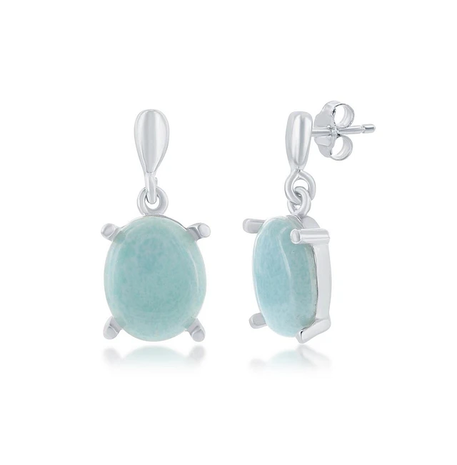 Caribbean Treasures Sterling Silver Four-Prong Oval Larimar Dangle Earrings