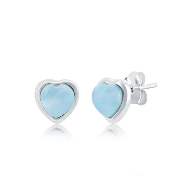 Caribbean Treasures Sterling Silver Heart Larimar Stud Earrings